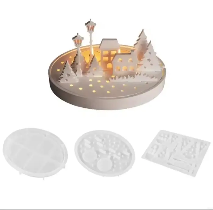 תבנית סיליקון 3 חלקים מגש +סטנד+צורות שונות עץ חג המולד.